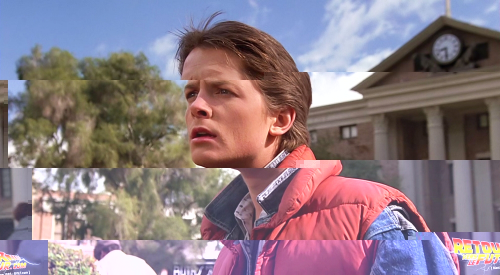 Lorsque l'on compare l'image de l'écran à la photo originale, on se rend compte que, outre le fait que la tête de Montand a été remplacée par celle de Biff Tannen, les deux images ne sont pas du même format. Il a donc fallu qu'ils agrandissent l'image pour combler les espaces à gauche et à droite afin qu'elle remplisse complètement l'écran de télévision.